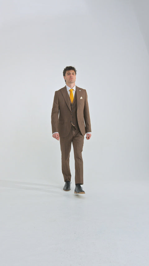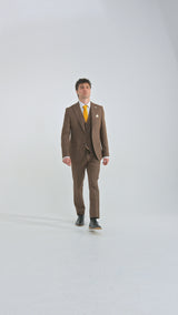 Traje de hombre James de 3 piezas, color marrón liso, corte clásico.